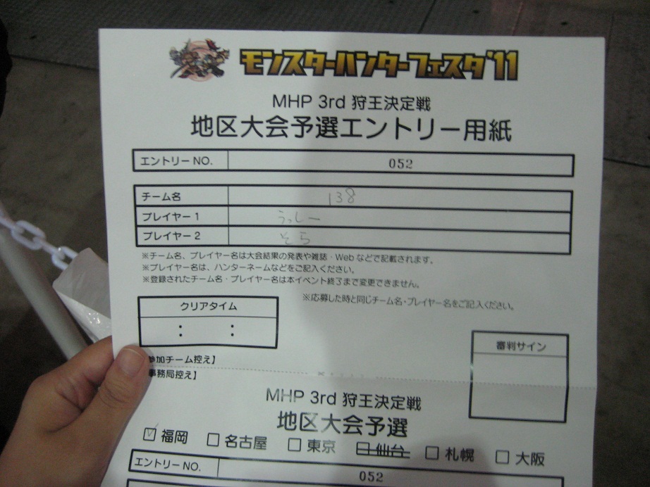 北九州市の西日本総合展示場にて開催されたモンスターハンターフェスタ'11福岡大会に7名で行ってきました。