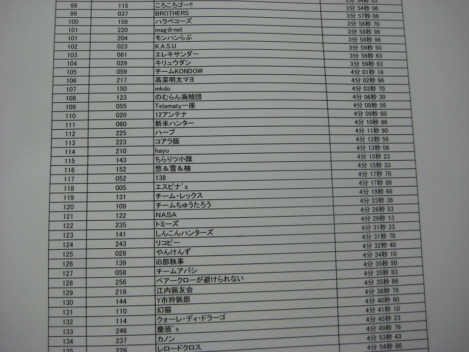 ○138-0901 3月20日 小郡市体育館 参加人数23人 ○138-プチオフ 4月17日 参加人数12人 ○138-プチオフ 5月3日 参加人数7人 ○138-0902 5月16日 ネットカフェ自遊空間 参加人数4人 ○138-0903 5月30日 ネットカフェ自遊空間 参加人数7人 ○138-0904 6月27日 えーるピア久留米 参加人数9人 ○138-0905 8月15日 さざんぴあ博多 参加人数6人 ○138-0906 8月29日 えーるピア久留米 参加人数9人 ○138-0907 9月12日 えーるピア久留米 参加人数7人 ○138-0908 9月19日 えーるピア久留米 参加人数6人 ○138-プチオフ 9月25日 参加人数6人 ○138-0909 10月10日 えーるピア久留米 参加人数8人 ○138-0910 10月17日 さざんぴあ博多 参加人数5人 ○138-プチオフ 10月24日 参加人数5人 ○138-0911 11月15日 えーるピア久留米 参加人数4人 ○138-0912 11月28日 えーるピア久留米 参加人数5人 ○138-0913(年末オフ) 12月26日 えーるピア久留米 参加人数9人 2次オフ+4人 計13人 |